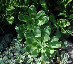 Побеги полегающие, длиной около 30 см, на зиму отмирают, густо покрыты округлыми листочками. Весной они коричневатого цвета, а летом становятся светло-зелёными. В отличие от других очитков, у очитка анакампсерос листья не толстые, а тонкие, как у обычных травянистых растений. В июне на концах побегах появляются голубые бутоны, которые вскоре превращаются в пурпурные цветочки. Соцветия у седума анакампсерос почти округлой формы и тоже очень необычны по цвету для очитков. Нуждается в солнце и поливе во время засухи. Разрастается медленно. Плотного ковра не образует. Хорошо смотрится среди камней на альпийской горке.