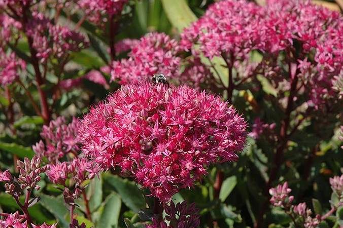 Седум Carl (Карл). Очень привлекательный сорт. Листья толстые, мясистые, сочного зеленого цвета. Цветки многочисленные, мелкие, темно-розового цвета. Цветение обильное. Седум Carl (Карл) — неприхотлив, засухоустойчив. Красиво смотрится очиток Carl (Карл) как небольшими группами, так и целыми зарослями.