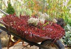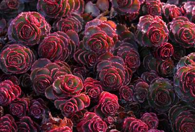Очиток Dragons Blood (Дрэгонс Блад). Великолепная сортовая форма Dragon's Blood (Кровь дракона) представляет собой быстро растущий стелющийся очиток. Его глянцевые красно-фиолетовые листочки образуют крохотные розетки на концах стеблей. Красно-розовые цветы появляются в конце лета. Разрастаясь, создает плотный коврик 7-10 см высотой.