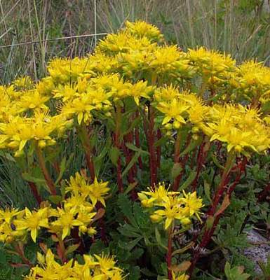 Многолетнее травянистое растение, образующее низкие коврики 8-15 см высотой. Корневища горизонтальные, слегка одревесневающие. Стебли многочисленные, ветвящиеся, приподнимающиеся, 10-30 см высотой, зеленые, из них немногие цветоносные, остальные вегетативные. Листья очередные, зеленые, плоские, 2-3 см длиной, 1-1,5 см шириной. Соцветие желтое, верхушечное зонтиковидное состоящее из нескольких завитков. Цветет в июле-августе. Зимостоек. В культуре с 1769 года. Предпочитает суглинки или песчаные почвы, однако будет расти на любом грунте при условии его хорошей водопроницаемости. Исключительно засухоустойчив. Поливать следует редко. Когда лето слишком жаркое или во время пересадки полив требуется. Используется для создания ковровых посадок, в рокарии. Наиболее выигрышно смотрится при высадке большими массивами.
