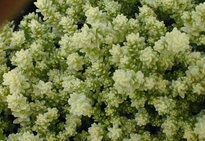 Очиток (седум) едкий Elegans (Элеганс). Новый красивый сорт. Верхушки побегов, в отличие от видового растения, светло-желтые, почти белые. Ковры из этого седума получаются очень красивые, с переливами от седовато-зеленого до белого и кремово-желтого. В июне-июле обильно цветет. Цветки желтые. Покрывают побеги полностью. На время цветения ковер становится очень ярким.