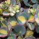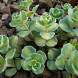 Голые, ползучие стебли красноватого цвета образуют густые низкие ковровые заросли. Листья сидячие, округлые, зубчатые, сизо-голубоватые, с кремовым или бледно-желтым пятном в середине, на солнце могут приобретать трехцветную окраску — край листа краснеет. Соцветия — верхушечные, зонтиковидно-щитковидные метелки, диаметром 2 — 4 см. Цветки розовые. Зимой листья и стебли вымерзают. Весной молодые побеги появляются вновь от корневища только при установлении устойчивого потепления. Предпочитает сухое солнечное место, выносит полутень.