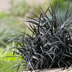 Офиопогон плоскострелый Black Dragon (Блэк Дрэгон). Очень эффектный сорт с практически черной листвой. Цветки кремово-белые, плоды черные. Высота 25 см. Этот сорт отлично смотрится с любыми растениями со светлой листвой. Зимостойкость хорошая.