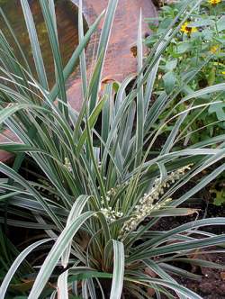 Офиопогон Silver Mist (Сильвер Мист). Клубнекорневищный многолетник. Листья тонкие, жестковатые, узколинейные, 15 — 35 см более или менее изогнутые. Цветонос короче прикорневых листьев, несет рыхлое, многоцветковое соцветие 5 — 7 см длиной. Цветков по 2 — 3 в пучке, они мелкие, поникшие, сиренево-красноватые. Плоды — сине-черные ягоды.