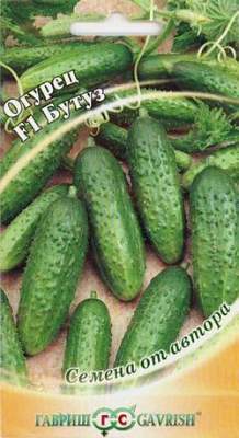 Огурец Бутуз F1 корнишон. Скороспелый (43-48 дней от всходов до плодоношения) урожайный, партенокарпический гибрид с букетным заложением завязей (4-6 в одном узле). Растение среднерослое, с ограниченным ветвлением боковых побегов. Рекомендуется для выращивания в пленочных теплицах. Посев на рассаду в конце апреля. Высадка рассады в грунт в конце мая — начале июня в фазе 3-4-х настоящих листьев. Посев непосредственно в теплицу — в мае — июне. Схема посадки 30х70 см. Плоды цилиндрические, ярко-зеленые, длиной 9-11 см, частобугорчатые, белошипые, массой 80-100 г. Отличаются высокими товарными и вкусовыми качествами: хрустящие, с прочной кожицей и маленькой семенной камерой. Хороши для засолки и маринования, подходят для употребления в свежем виде. Устойчив к корневым гнилям, настоящей и мучнистой росе, оливковой пятнистостии. Урожайность — 11-12 кг/м2.