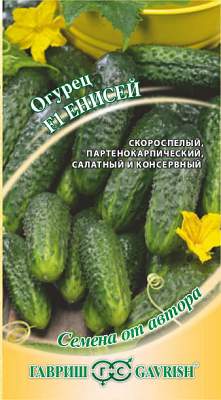 Огурец Енисей F1, 10 шт. авторский. Скороспелый (40-45 дней от всходов до плодоношения) партенокарпический гибрид для пленочных теплиц и открытого грунта. Женского типа цветения. В узлах образуется до 3-х ровных плодов с отличным вкусом.