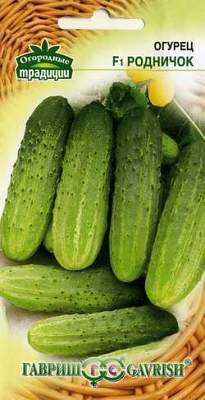 Огурец Родничок F1 10 шт. Среднеранний (от всходов до плодоношения 40-48 дней) пчелоопыляемый гибрид преимущественно женского типа цветения, предназначен для выращивания в открытом грунте и под временными пленочными укрытиями. Устойчив к антракнозу, относительно устойчив к ложной мучнистой росе, бактериозу и оливковой пятнистости. Плотность посадки 4-5 раст./м2.