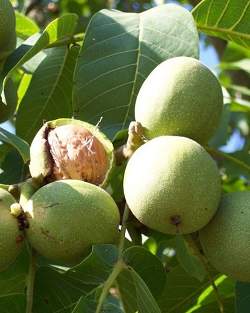 Орех грецкий. Одна из самых популярных ореховых пород в России и странах постсоветского пространства. У грецкого ореха густая и мощная корневая система, поэтому садить его в непосредственной близости к постройкам не стоит. Деревья этой культуры не любят застоя холодного воздуха и высокого уровня грунтовых вод, поэтому сажать саженцы грецкого ореха не рекомендуется в котловинах. А вот пологие склоны — фактически идеальное место для посадки. Цвести грецкий орех начинает в мае, а плоды можно собирать в сентябре-октябре.