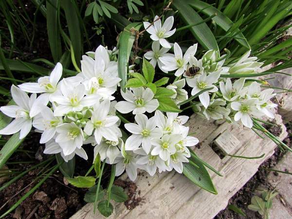 Орнитогаллум, или Птицемлечник. На первый взгляд — ничего особенного. Но когда семейка белоснежных звездочек бодро распускается весной, это очень радует, ведь растение очень обаятельное. К тому же орнитогаллум чрезвычайно неприхотлив и легко разрастается.