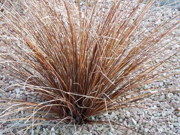 Осока Bronco (Бронко). Многолетник. Высота 25-30 см. Пышный куст, поникающий. Листва бронзового оттенка. Предпочитает солнечные места. Нетребовательна к типу почвы, нормально развивается как в засушливых, так и в болотистых зонах.