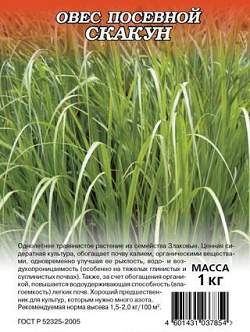 Овес посевной Скакун 1 кг. Однолетнее травянистое растение из семейства Злаковые. Ценная сидератная культура, обогащает почву калием, органическими веществами, одновременно улучшая ее рыхлость, водо- и воздухопроницаемость (особенно на тяжелых глинистых и суглинистых почвах). Также, за счет обогащения органикой, повышается водоудерживающая способность (влагоемкость) легких почв. Хороший предшественник для культур, которым нужно много азота.