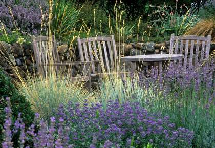 Плотный компактный куст с узкими серо-голубыми листьями и соцветиями с форме рыхлых метелок. К почвам не требователен, засухоустойчив.