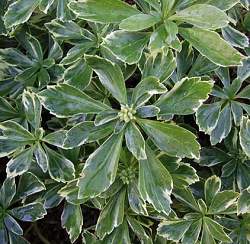 Почвопокровный вечнозеленый многолетник. Предпочитает тень, но хорошо растет и на солнце (может обгорать). Каждый ярус листьев, а их три - годичный побег. Листья кожистые с кремовыми зубчатыми краями. Цветет в мае некрупными белыми цветами. образуя плотный покров, пахизандра хорошо противостоит сорнякам. Ценится за свою густую и красивую листву. Это растение незаменимо для создания надпочвенного покрова в сухих и тенистых местах.