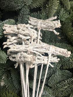 Палочки кокочейн на штекере (белые, с серебряными блестками). Станут прекрасным дополнением к новогоднему декору — для украшения венков, композиций из лапника.