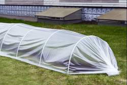 Парник с укрытием. Парник-тоннель, 4,5 м в сборе (пленка). Экономичный и эффективный. Позволяет без больших затрат выращивать ранние овощи и зелень на дачном участке. Комплектность: укрывной материал парниковая пленка 3м × 5м — 80мкр; полуарки — 10шт; соединительные трубки полуарок — 5шт.