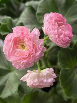 Пеларгония розебудная Kvarnlyckans Anna-Jeanette (К. Анна-Жанетт). Зональная, стандарт. Великолепные цветки. Густомахровые, бело-розовые, перламутровые. Цветоносы толстенькие, отлично держат соцветия. Сорт компактный, вполне может формироваться самостоятельно, но можно подстегнуть прищипкой. Цветет долго, пышно, шикарно.