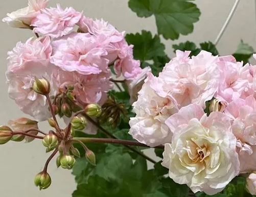 Пеларгония розебудная Леона_Галактика. Селекция Елены Пановой. Сорт, который уже завоевал сотни сердец. Межвидовой гибрид с участием зонартика (зонартики — гибриды гераней зональной и артикулатум). Куст компактный, листья крупные, темно-зеленые. Цветоносы крепкие, хорошо держат шапки цветков. Ветвится куст самостоятельно. Цветет обильно, долго. Цветки махровые, объемные, до 7 см в диаметре, в форме розы. Окраска светло-персиковая. Вначале бутон почти белый, но потом набирает цвет. Отличный знаковый сорт.