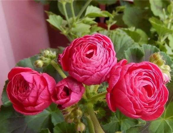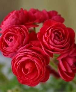 Пеларгония розебудная PAC Viva Rosita (Вива Розита). Зональная, стандарт. Цветки необычной формы, их часто сравнивают с ранункулюсами (сортовыми лютиками). Цветки крупные, красновато-малиновые, в соцветии располагаются не слишком плотно, поэтому каждый светится как драгоценный камень. Цветет прекрасно, шапки формирует крупные. Сорт способен формировать разветвленный куст самостоятельно, но прищипка молодого растения будет способствовать более быстрому кущению.