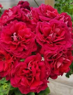 Пеларгония розебудная СиМ_Флоренция. Зональная, карлик. Сорт необыкновенно красивый, цветок сочно-малиновый, густомахровый. Очень крупный, в форме розы. Соцветия плотные. Куст компактный, подойдет для содержания на подоконнике.