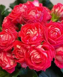 Пеларгония розебудная ТА_История Любви. Зональная, компакт. Сорт, ставший легендой. Ни один коллекционер не пропустил эту красавицу. Когда его только выпустили, цена за черенок достигала 15 тысяч. Куст стандартный, компактный, формируется самостоятельно, но обрезка и прищипка делают его более плотным и облиственным. Цветоносы средней длины, очень крепкие. Розочки правильной формы, кораллово-алые с белой подкладкой. Цветет обильно, часто, щедро.