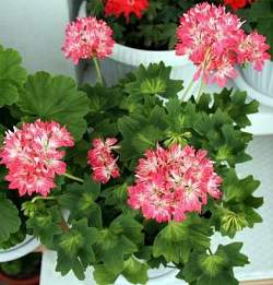 Пеларгония стеллар Butterfly Brian West (Баттерфляй Брайан Вест). Звездчатая, карлик. Листья зеленые с белым пятнышком в центре. Лепестки у основания белые, на кончиках розовые. Двухцветные цветки в крупных соцветиях создают очень красивую картину. Неприхотлива, быстро и легко зацветает.