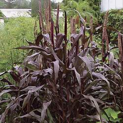 Исключительно декоративный вид с бронзово-бордовыми листьями шириной 3,5 см, плотнокустовой, высотой до 1,5 м. Листья и стебли бронзово-бордовые, соцветия тёмно-пурпурные, длинные, вертикальные.