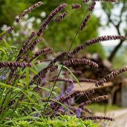 Перловник Red Spire (Ред Спайр). Крупный красивый злак. Высота до 120 см. Образует мощную куртину. Соцветия - колосовидная метелка длиной до 20 см. Цветки красновато-фиолетовые, длиной до 1 см. Цветение очень продолжительное и обильное. Зацветает в июне. Полностью зимостоек в средней полосе России.