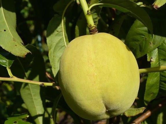 Персик Донецкий Желтый.Для плодов характерна круглая форма, порой они бывают формы широкого овала, несколько приплюснуты по обеим сторонам, также достаточно виден визуально на поверхности специфический брюшной шов. Плоды имеют кожуру бледно-желтого оттенка с изысканным размытым румянцем на поверхности. У недоспевших персиков цвет кожицы является зеленовато-желтым — таким же, как и мякоть фрукта. По консистенции она плотная, непосредственно возле кожуры имеет желто-оранжевый цвет. Вкус Донецкого желтого можно назвать достаточно сладким, имеющим приятную кислоту. Косточка у плода больших размеров, от мякоти ее отделить практически невозможно. При дегустации специалистами данный сорт персика получил хорошую оценку 4, 9 балла.