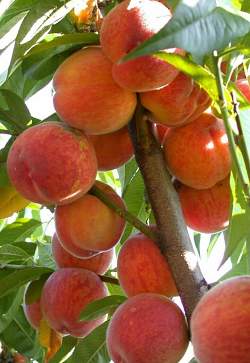 Персик колонновидный Тотем Садовода. Среднераннего срока созревания. Дерево высотой 1,7 м. Плоды крупные, до 300 г весом, округлые, желтые с красным сплошным румянцем. Мякоть сочная, желто-оранжевого цвета, сладкого вкуса.