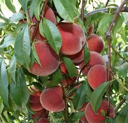 Персик колонновидный Золотой Триумф. Раннего срока созревания. Дерево колонновидное, высотой 1,5 м, с компактной кроной. Плоды сладкие, беловато-желтые с крупным красным румянцем, очень сладкие, с оранжевой мякотью, средней массой 280 г. Кожица тонкая, чуть опушенная, мякоть медовая, сочная с прекрасным ароматом. При правильном уходе с дерева можно собрать до 12 кг плодов. Высокоустойчив к болезням, зимостойкий. Самоплодный.