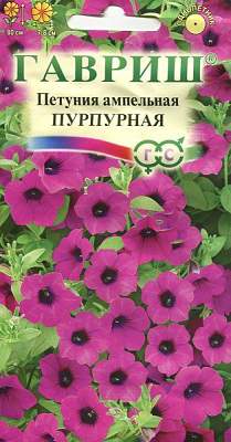 Петуния ампельная Пурпурная 10 шт. Растение c повисающими побегами длиной до 80 см. Цветки 7-8 см в диаметре с гладким краем лепестков. Выращивают рассадным способом. Посев проводят с января по апрель, поверхностно, под стекло (после появления всходов стекло убирают). В зимние месяцы (январь-февраль досветка обязательна).