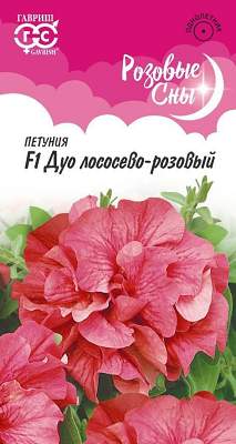 Петуния Дуо (лососево-розовый) персиковый F1 махр.. Многоцветковая махровая серия, очень рано всупает в цветение. Роскошное однолетнее растение с высокой устойчивостью к неблагоприятным погодным условиям. Эта гибридная форма петунии имеет объемный компактный и ветвистый кустик высотой 25-35 см и диаметром 25-30 см.