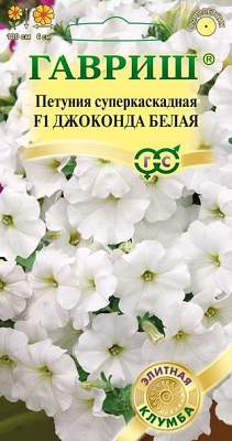 Петуния Джоконда белая F1 (Фортуния) многоцветковая 10 шт гранул. пробирка Н14. Уникальные гибриды итальянской серии "Джоконда" формируют поразительно мощный каскад из зелени и огромного количества цветов. Они превосходят все известные каскадные формы по многим параметрам, включая "сурфинию". Одно растение обладает такой скоростью и силой роста, что быстро заполнит пространство диаметром 1 м. Цветение настолько обильное, что практически не видно зелени и количество цветков не меняется с начала цветения до заморозков.