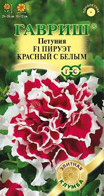 Петуния Пируэт красный с белым F1 махр.. Обворожительная крупноцветковая серия петуний с мощным ветвлением и ранним цветением. Растение образует шаровидный куст высотой 25-35 см и диаметром 25-35 см. Цветки плотномахровые, красные с эффектной белой полосой по краю гофрированных лепестков, диаметром 10-12 см. Посев проводят с февраля по март. При зимнем посеве всходам необходима подсветка. Всходы появляются через 7-12 дней. На постоянное место высаживают, когда минует опасность заморозков. Цветет с конца мая весь сезон. Светолюбива и достаточно засухоустойчива. Предпочитает легкие, плодородные, хорошо дренированные почвы. Украсит клумбы, вазоны, балконные ящики, подоконники, низкорослые бордюры.