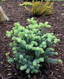 Пихта Blaue Hexe — миниатюрный подушковидный хвойный кустарник, высотой 0,3 м, диаметром 0,4 м. Ежегодный прирост 1-2 см. Хвоя короткая, толстая, очень густая, серо-голубого цвета. Молодой прирост светлый, пепельно-голубой, красиво выделяется на фоне старой хвои.