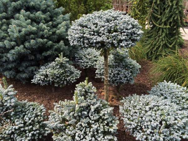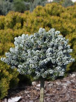 Пихта корейская Kohouts Icebreaker (Когоутс Айсбрейкер) на штамбе. Карликовая форма, плоская, гнездовидная, красива в любое время года, к 10-ти годам шириной всего 30-50 см.