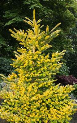 Пихта корейская Aurea (Ауреа). Имеет золотистую хвою. Иголки короткие, зимой ярко-желтые, весной и летом ближе к цвету лайма. Оборотная сторона серебристая. Очень красивая, когда появляются фиолетовые шишки. Нарастает примерно на 15 см в год. Форма широкопирамидальная. Зимостойкость в средней полосе России уверенная.