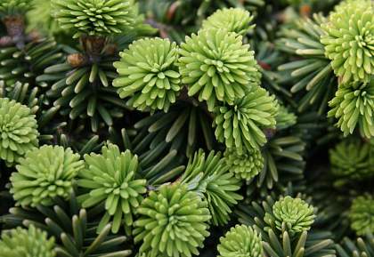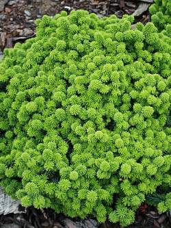 Пихта Piccolo (Пикколо). Карликовый сорт пихты бальзамической. Годовой прирост до 3 см. После 10 лет достигает 50 сантиметров в высоту и ширину. Хвоя от ярко-зеленого до темно-зеленого цвета. Очень красива весной, когда молодой прирост полностью закрывает взрослую хвою и растение становится цвета свежего салата. Форма, в отличие от сорта Nana, склонна к шаровидной.