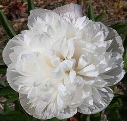 Пион Alba Plena (Альба Плена). Полушаровидный пион Alba Plena отличается махровыми соцветиями изумительной красоты! Лепестки окрашены в белый цвет с изящным розовым оттенком. Очень ранний срок цветения. Запах слабый. Куст компактный, около 80 см.