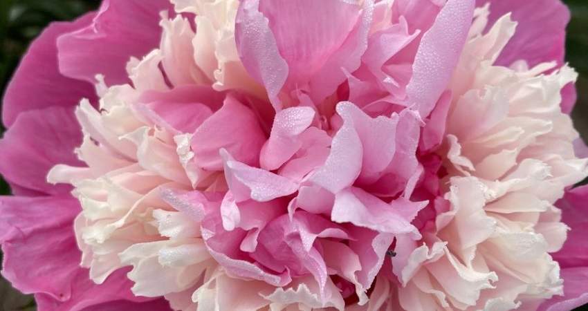 Пион Anima (Анима). Махровый бомбовидный. Цветок розовый с кремово-белыми и розовыми внутренними лепестками. Срок цветения средне-ранний. Высота 75 см.