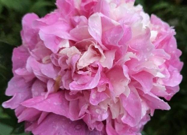 Пион Annemieke (Аннамике). Цветок махровый бомбовидный с приятным сладким ароматом. Цветки розовые с кремовыми вкраплениями, диаметром 15 см. Листья темно-зеленые. Высота 75 см. Цветет в средние сроки.
