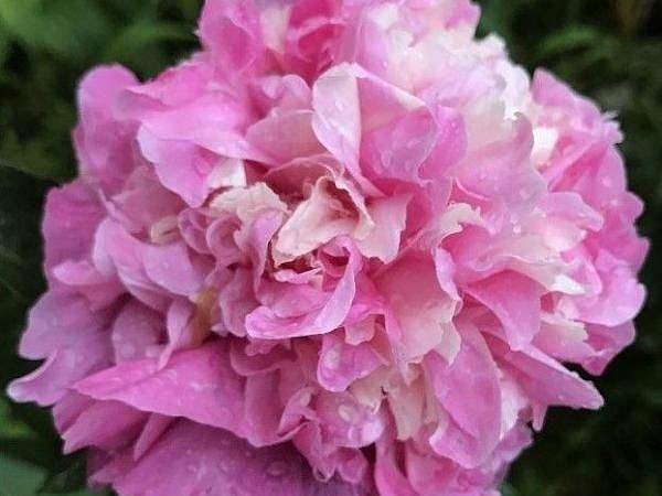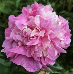 Пион Annemieke (Аннамике). Цветок махровый бомбовидный с приятным сладким ароматом. Цветки розовые с кремовыми вкраплениями, диаметром 15 см. Листья темно-зеленые. Высота 75 см. Цветет в средние сроки.