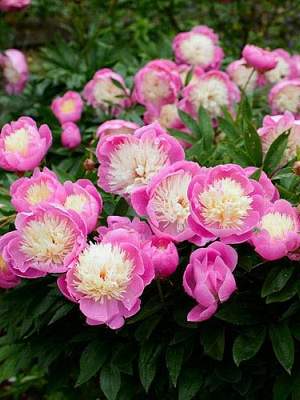 - У высоких пионов часто оголены внизу стебли. В этом случае требуется посадить растения, закрывающие "ноги" пиона. Чаще всего на эту роль подходят округлые подушковидные растения: герань. гейхера, манжетка, буквица, бадан, хоста, низкие ирисы, подушковидные астры, примулы, маленькие летники.