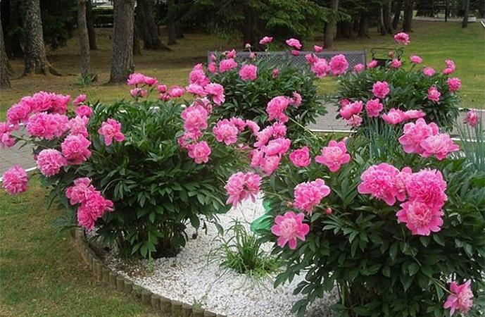 - Пион для хорошего развития требует регулярных поливов, подкормок и мульчирования почвы. Нетрудно сообразить, что кусты надо размещать так, чтобы за ними удобнее было ухаживать — небольшими группами, массивами, ленточными бордюрами или одиночно.
