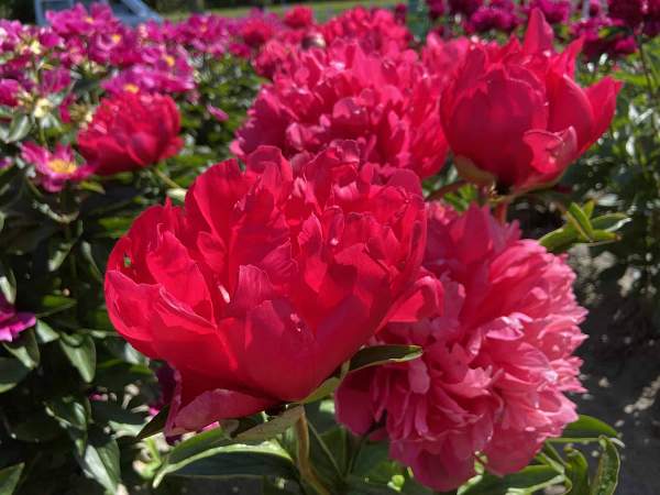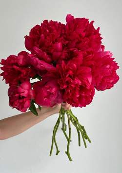 Пион Belgravia (Белгравия). Ранний. Очень крупный, необычный по строению бомбовидный цветок. Окраска насыщенно-красная. Размер цветков до 20 см. Побеги без боковых бутонов. Цветет обильно. Высота куста 90 см. Аромат сладковатый. Прекрасен для срезки.