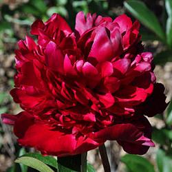 Пион Big Red Boomer Sooner (Биг Ред Бумер Сунер). Темно-красный, очень крупный, со свободным расположением лепестков. Куст мощный, стебли прочные и темные. Среднего срока цветения.
