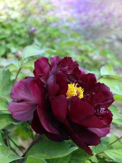 Пион Black Beauty (Блэк Бьюти). Это самый темный пион из всех травянистых. Отличается полумахровыми соцветиями удивительной окраски. Лепестки бордовые с красивым шоколадным оттенком. В центре бутона искрятся желтые тычинки.