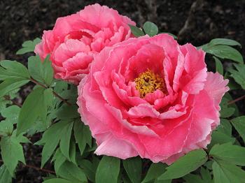 Пион Рока (Paeonia rockii) имеет ароматные, очень крупные цветки (20 см и более) белого, пурпурного или розового цвета. Это разновидность пиона древовидного из Китая (провинция Ганьсу). Растение быстрорастущее, в год побеги отрастают до 70 см.