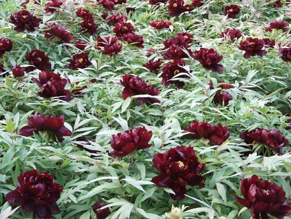 Пион древовидный — морозоустойчивый кустарник, достигающий высоты 2 м, с крупными ярко-зелеными листьями. На одном кусте может быть от 30 до 70 цветков. Диаметр каждого от 20 до 25 см. Продолжительность цветения 12-14 дней. Растение декоративно и после цветения из-за необычной формы листьев. Пион неприхотлив, устойчив к болезням. На одном месте без пересадки может расти более 50 лет. Рост энергичный.