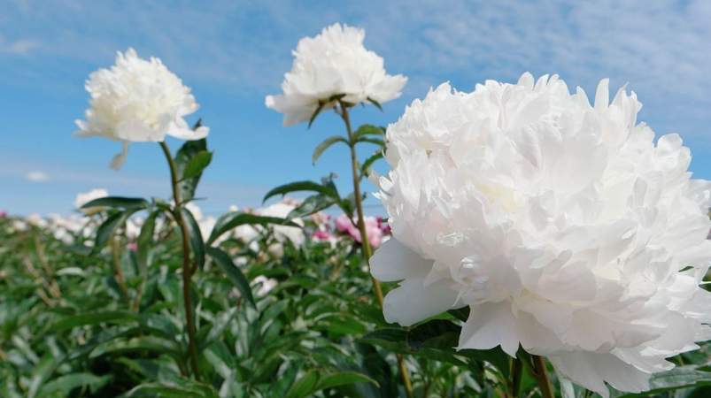 - Несколько пионов рядом — это уже большая однородная масса резной листвы. Если высаживать рядом другие растения, то лучше с цельными листьями. Это лилейники, ирисы, хосты, бадан.